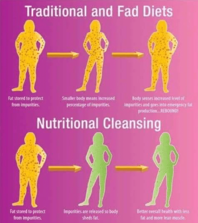 Traditional diets might allow us to lose weight for a while but do not do anything to rid our body of toxins and impurities. As a matter of fact, after losing some weight the impurities and toxins end up making a higher percentage of our body composition and guess what happens then? Your body enters an ‘emergency’ mode, creating more fat cells to protect us!