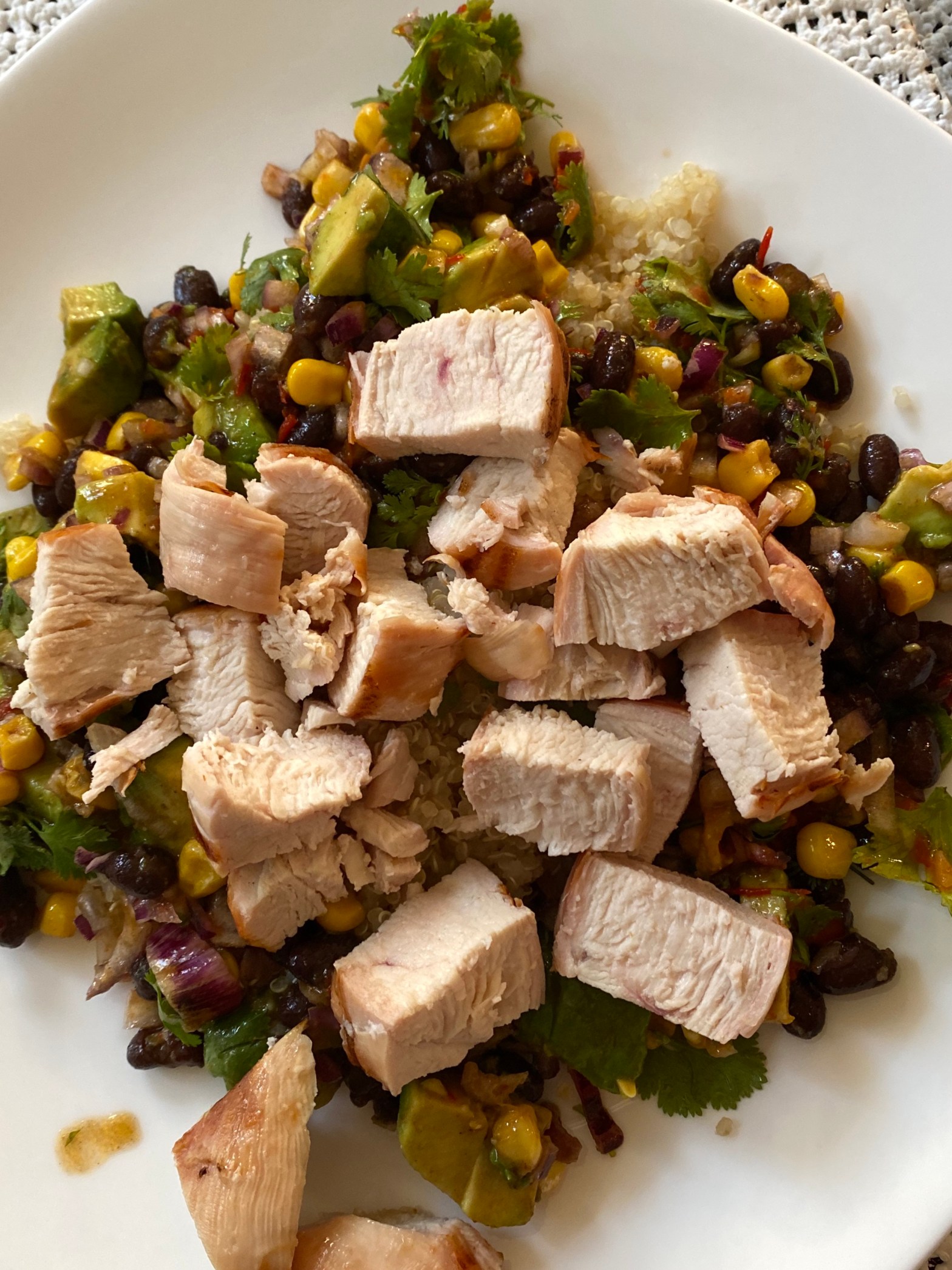 – (seasoned with 1/8 tsp sea salt, 1/8 tsp cumin, 1/8 tsp chili powder, 1/8 tsp garlic powder) - ¼ cup red onion, diced small