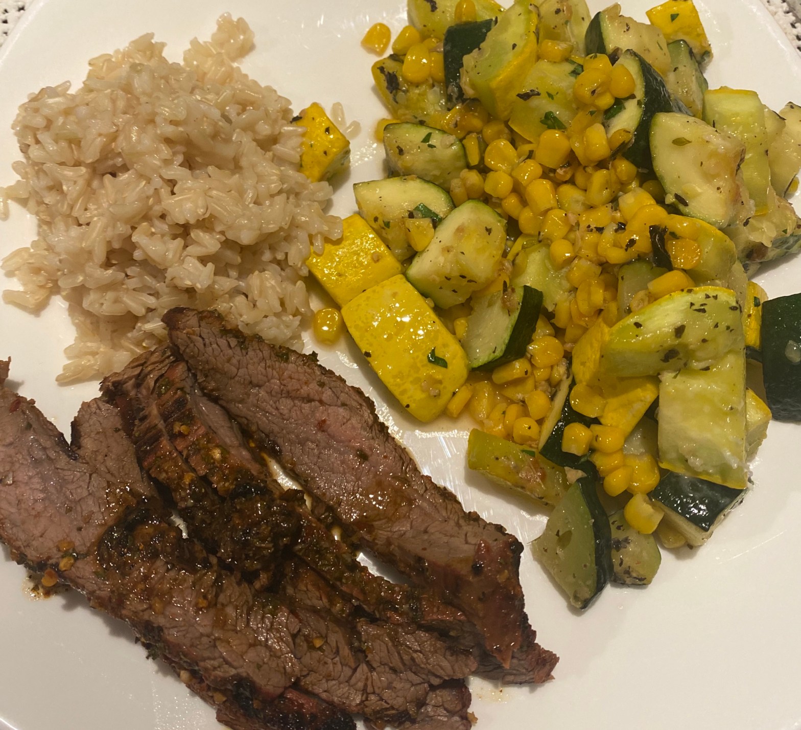 Argentinian Chimichurri Flank Steak with Parmesan Zucchini and Corn